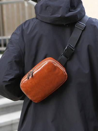 1 件休闲纯色男士胸包,PU 皮革,防水腰包,运动背包,斜挎包,适合运动、健身、徒步旅行、旅行、购物 - 彩色 - 查看 10