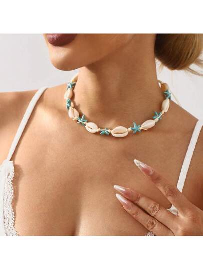 1 件手工波西米亚海星贝壳项链,适合女性夏季、海滩、旅行佩戴 - 海星貝殼 - 查看 1