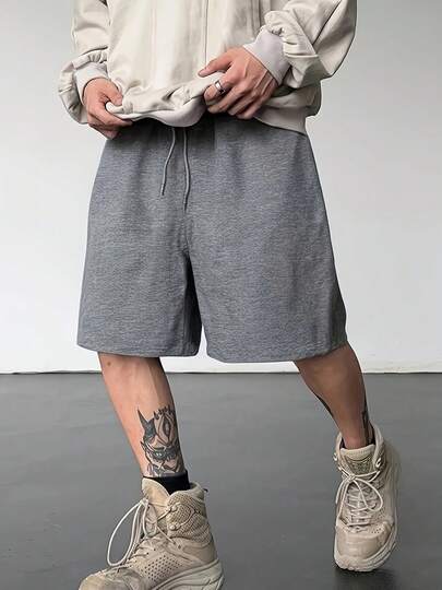 男士运动休闲纯色透气跑步健身短裤 - 灰色 - 查看 1