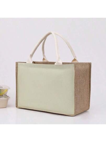 黄麻手提购物礼品袋层压防水复古亚麻升级拉链亚麻袋简约礼品袋时尚万能购物袋 - 綠色 - 查看 1