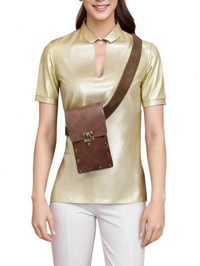 2 件套蒸汽朋克中世纪小袋维京腰带皮革手机钱包蒸汽朋克海盗服装旅行腰包成人钱包 - A - 查看 2