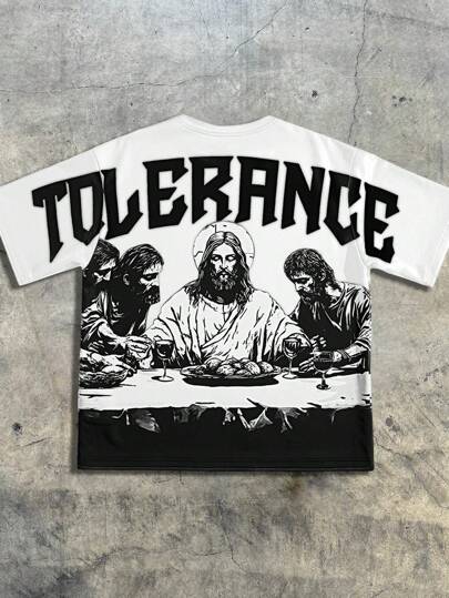 AXEPEAK 男士宽松落肩休闲针织T恤,适合日常穿着,适合街头潮流 - 白色 - 查看 1