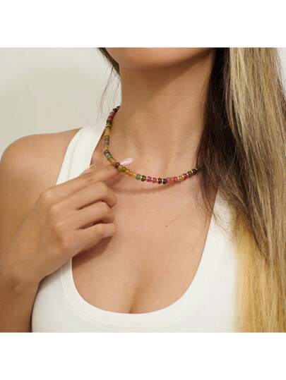 1 件时尚个性化多巴胺自由风格天然石手工串珠颈链,适合女性日常佩戴 - 多姿多彩 - 查看 1
