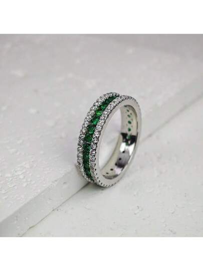 1 件 925 纯银戒指,镶嵌多颗绿色锆石,扭绳设计,时尚迷人的男士/结婚戒指,适合职业、生日、节日和日常使用,银重 7 克 - 綠色 - 查看 2