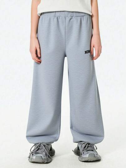 SHEIN Tween Boy 活力字母印花裤,适合居家休闲、玩耍、户外购物、散步、滑板、派对、音乐节、与朋友一起出去玩 - 淺灰色 - 查看 1