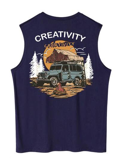 男士字母和心形印花休闲圆领背心 - 藏蓝色 - 查看 1