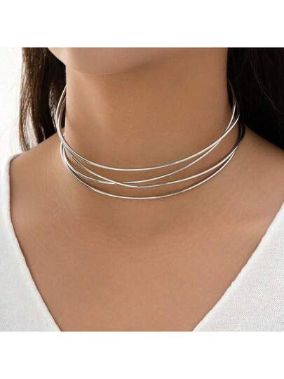1 件不对称几何项链,朋克金属项圈项链,女士,金色金属十字交叉时尚闪亮独特个性化颈链,情侣配饰 - 銀色 - 查看 1