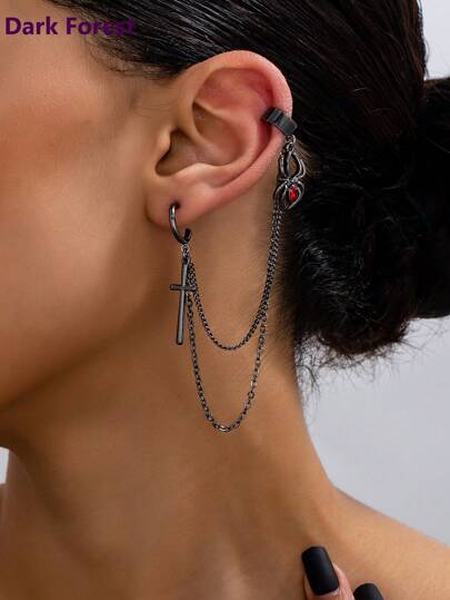 1 件哥特式和蜘蛛金属吊坠配红色玻璃装饰,时尚魅力耳环 - 蜘蛛十字耳掛 - 查看 6