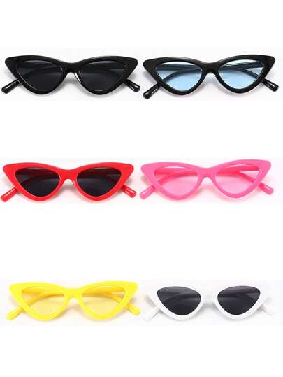 3副儿童时尚装饰眼镜 男童女童个性复古三角猫咪眼镜 宝宝时尚街头潮流眼镜(赠送眼镜) - 彩色 - 查看 10