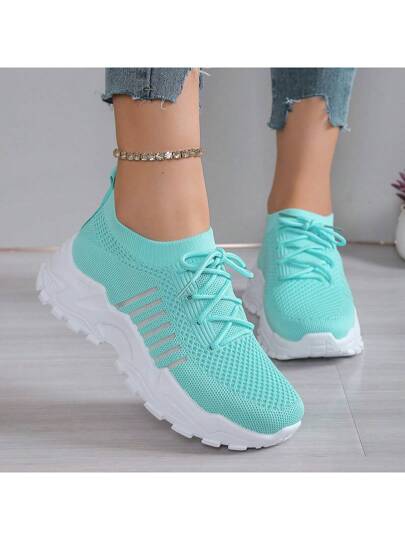 新款春夏针织运动鞋,轻便舒适透气休闲跑步鞋 - 藍色 - 查看 1