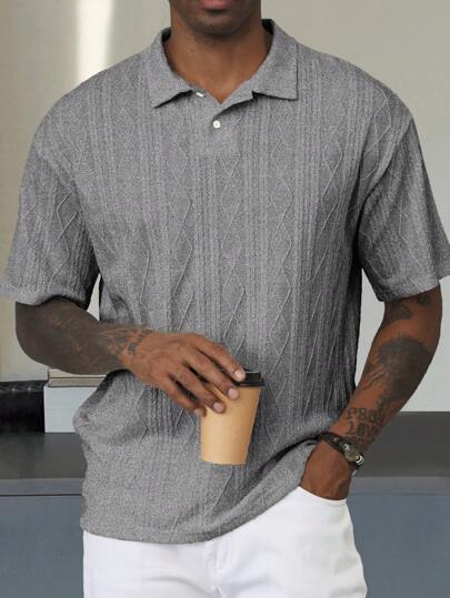 Manfinity Homme 男士休闲度假风,这款灵感源自INS的几何菱形提花针织短袖Polo衫,是音乐节和夏威夷海滩度假的理想之选。 - 灰色 - 查看 1