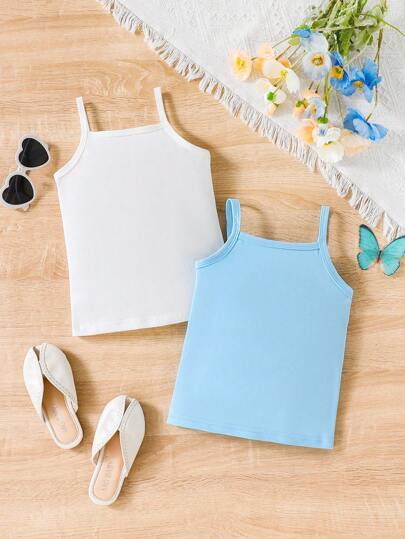 SHEIN 年轻女孩时尚棉混纺黑白两件套吊带背心适合夏季基本款上衣无袖上衣基本款上衣上衣黑白上衣 - 彩色 - 查看 2