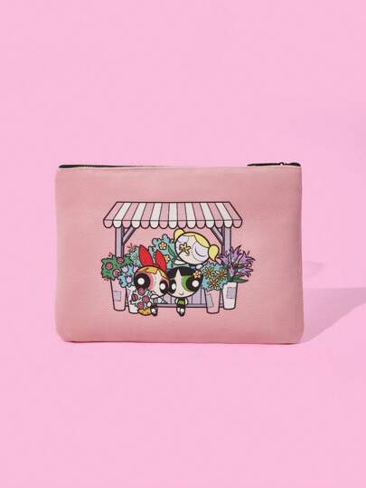 THE POWERPUFF GIRLS X SHEIN 花朵、泡泡、毛茛图案便携式化妆品收纳包,多功能收纳化妆品、硬币和文具,适合男女 - 彩色 - 查看 1