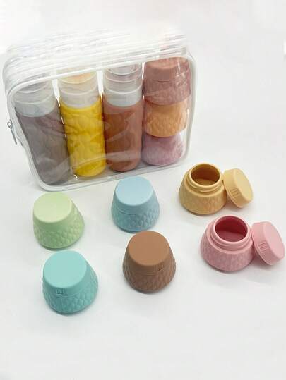 旅行硅胶面霜瓶便携式分配器带盖面霜瓶小乳液盒容器乳液瓶可重复使用的空化妆品容器 - 彩色 - 查看 1