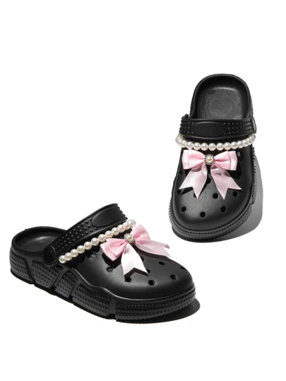 CIVHOM 女士时尚休闲木屐,轻便透气防滑软底花园鞋,夏季拖鞋沙滩鞋,带个性化闪亮饰物 - 黑色 - 查看 1