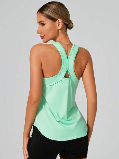 女士无袖运动背心,宽松版型,适合徒步、跑步、健身、瑜伽等夏季运动。 - 綠色 - 查看 3