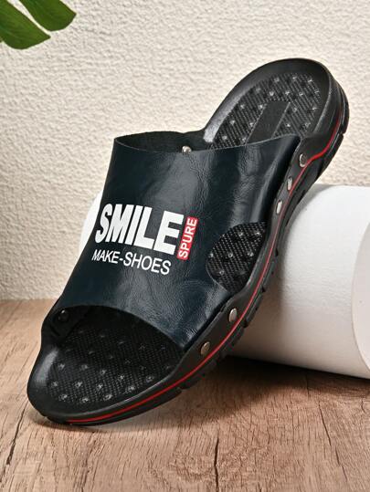男士拖鞋夏季户外真皮凉鞋大码39-48沙滩拖鞋防滑休闲拖鞋男鞋 - 藍色 - 查看 1