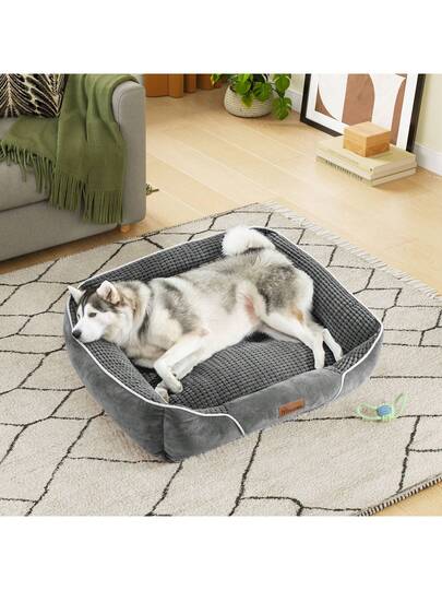 Large Dog Bed Pet Sofa Bed, Super Soft Comfy Washable Dog Bed,Pet Bed With Anti-Slip Bottom,Soft Corn Velvet Pet Bed,76x61x23cm, Grey - 灰色 - 查看 5