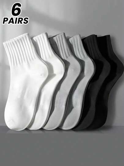 1/3/6 双男士运动袜,跑步徒步户外吸湿排汗透气篮球中筒薄款袜子,男女通用夏季 - 彩色 - 查看 1