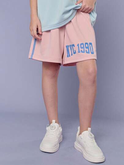 SHEIN Explorewe 夏季女童休闲字母印花网眼短裤 - 粉色 - 查看 1