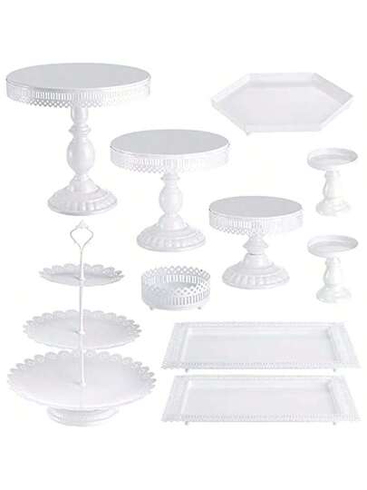 Hedume 10-Set Cake Stands Metal Cupcake Stand Set With Multiple Combination Styles Dert Plate Cake Serving Tray Candy Fruit Display Tower For Wedding Birthday Party Anniversary Baby Shower - 白色1 - 查看 5