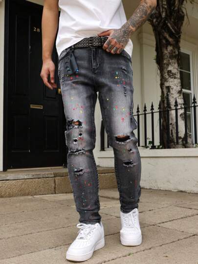 Manfinity LEGND 男士做旧宽松锥形牛仔裤 - 灰色 - 查看 1
