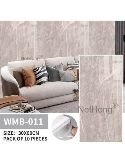 10 Pack Self-Adhesive Marble Tiles Sticker Stick On Wall Floor Kitchen Bathroom - 灰棕色 - 查看 10