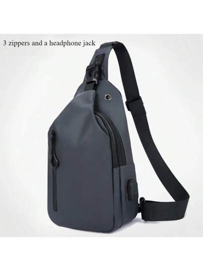Men Bag Fashion New Solid Color Men Chest Bag Outdoor Casual Fashion One Shoulder Crossbody Bag Nylon USB Charging Shoulder Bags - 灰色 - 查看 1