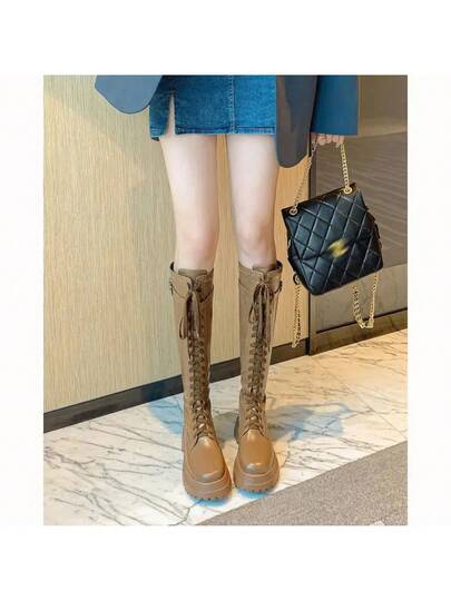 The New Thick-Soled, Knee-Length, Slimming Long Boots And High Boots For Women Show Off Their Long And Handsome Legs - 卡其色 - 查看 1