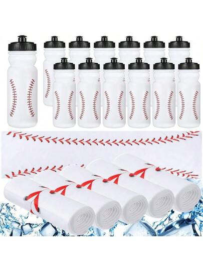 24 Pcs Sport Party Favors Include 12 Pcs 20 Oz Plastic Soccer Football Basketball Water Bottles Bulk 12 Pcs 40x12 Softball Baseball Cooling Towels For Soccer Sport Team Gift Baseball - 黑白 - 查看 1