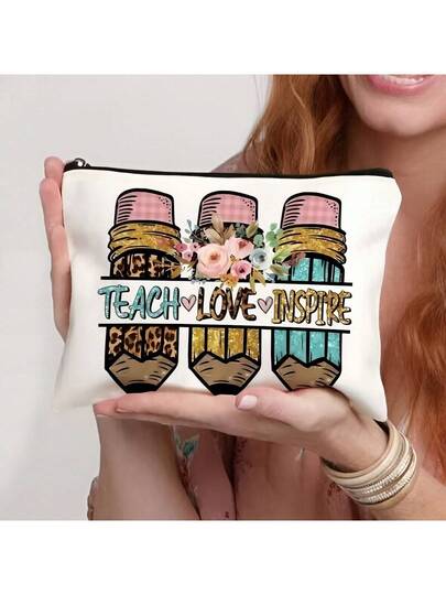 1 件教师礼物,送给最好的老师字母印花化妆包,礼品袋旅行拉链袋,轻便储物袋,零钱包,拉链手拿包,化妆包化妆收纳袋美容包化妆包 - 彩色 - 查看 1
