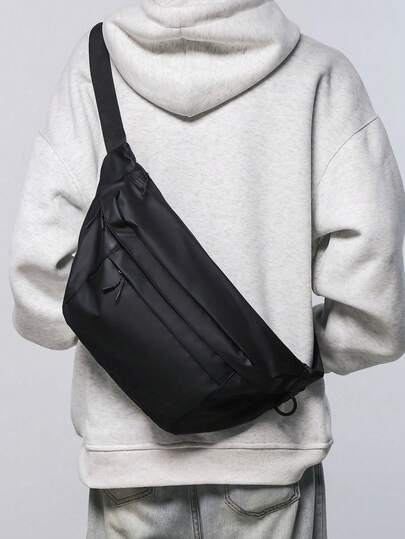 这款男士单肩斜挎腰包采用酷炫的纯色设计,并以防水黑色牛津布面料制成。 - 黑色 - 查看 1