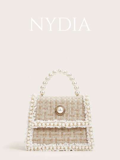 輕巧、商務休閒、閃光、閃亮、奢華、迷人、優雅、精緻迷你人造珍珠裝飾粗花呢挎包,適合女孩、女士、大學生、新秀和白領,適合派對、舞會、婚禮,適合青少年女孩女大學生、新秀和白領人士非常適合辦公室、大學、工作、商務、通勤、戶外、旅行、郊遊 - 米色 - 查看 1