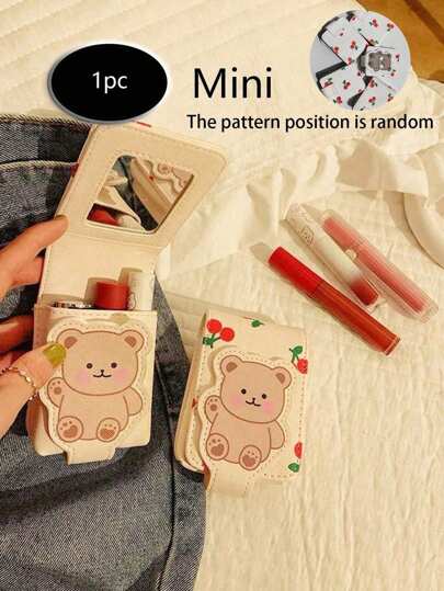 (櫻花圖案隨機剪裁)熊花卡通圖案,時尚y2k,適用於外置迷你化妝包旅行化妝包的化妝唇膏盒,附帶鏡子的皮革口紅盒化妝架便攜小化妝包,女性更多顏色,適用於商務旅行、度假攜帶,郵差口紅持有者口紅、唇蜜、唇油、唇膏pu皮革 - 彩色 - 查看 1
