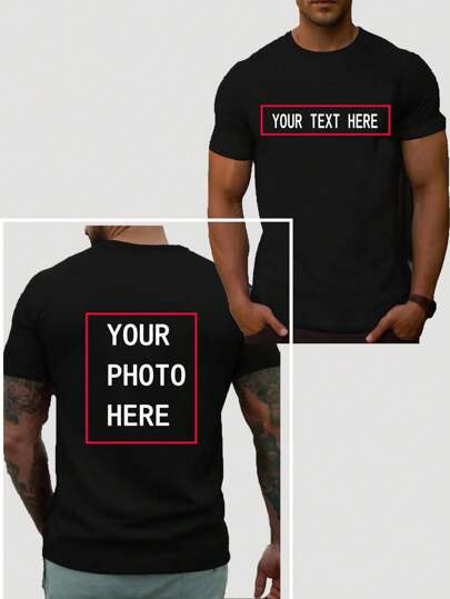 【高端定制】男士黑白T恤,可个性化定制。用户可以自由上传个人照片、动漫人物、情侣照、萌宠照片或艺术图案。设计采用正面居中创意文字搭配背面全景图片,提供原创DIY个性化印花服务。可印制姓名、日期、个性化标语或手绘图案。 - 黑色 - 查看 1