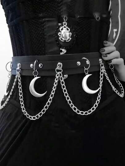 “皮革腰链束带,哥特式银链皮带,可调节派对角色扮演加大码链带 - 黑色 - 查看 11