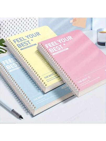 [励志笔记本] 1 件 A5 螺旋笔记本日记本 | 60 张,每日和每周议程计划器,莫兰迪线圈记事本,适用于办公室和学校用品,随机颜色(5.55x8.18 英寸),时间管理和励志设计,计划笔记本,柔和笔记本,优质纸张材料 - 彩色 - 查看 3