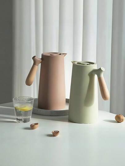 【北欧Ins风】1L大容量保温水瓶24H持久制冷制热双层真空玻璃内胆家用热水瓶便携式防漏办公室水壶木柄无需用电适用于冷热饮品房车露营野餐办公室旅行咖啡壶 - 1pcs - 查看 1