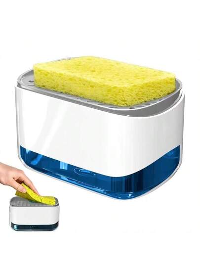 (包括1個隨機海棉)2英寸頂部泵的廚房肥皂分配器,海綿噴嘴和防滑底座,適用於水槽洗碗 - 白色 - 查看 1