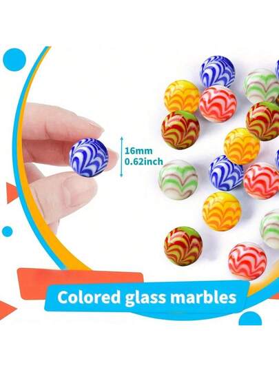 0.6 英寸手工玻璃弹珠、波纹弹珠、青少年玻璃球、彩色混合弹珠、模拟台球、迷宫游戏、花瓶填充物、鱼缸装饰、多肉植物装饰、水族箱造景、生日派对装饰、花园装饰,也适用于游戏