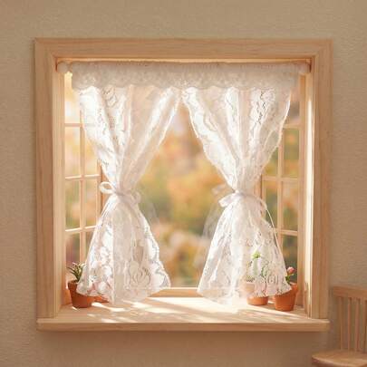 1/12比例微缩窗帘模型,窗帘装饰,娃娃屋手工DIY装饰窗景,蕾丝细节营造公主般淑女风情,适用于娃娃屋卧室、客厅装饰、摄影道具