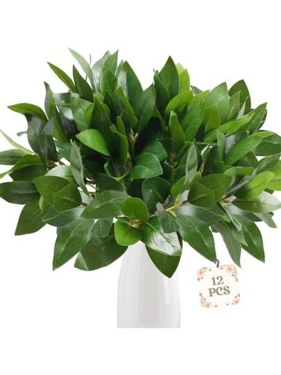 1/2/3/4片装,32厘米仿真桉树叶,仿桉树枝,适用于DIY墙面装饰、场景布置、客厅卧室花瓶插花、婚礼、派对装饰、桌面摆设。也适用于秋冬季装饰、家居、厨房、婚礼、餐桌、中心摆件、办公室、花园、户外装饰。