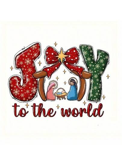 1/2/3 件 JOY To The World 圣诞主题热转印贴纸,防水耐用乙烯基材料,适用于 T 恤/牛仔裤/T 恤/枕头装饰,可熨烫,覆盖率高 - 彩色 - 查看 6