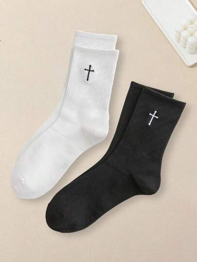 1/2/4/6/8 双卡通图案女士中性情侣运动袜中筒袜春夏季节日礼物 - 黑與白 - 查看 1