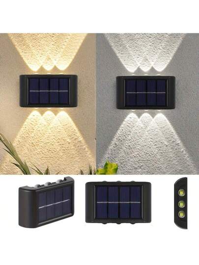1/2/4/6件太阳能凸镜壁灯,6/8颗LED双面照明壁灯,防水装饰灯,适用于花园、街道、户外走廊、阳台、墙壁装饰、节日礼物 - 黑色 - 查看 12
