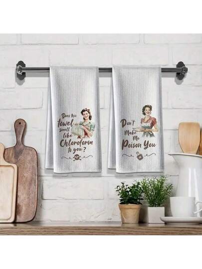 1/2/4 件套超柔软超细纤维厨房毛巾,趣味厨房毛巾,高吸水性洗碗布,新房主和乔迁派对的完美礼物,厨房洗碗巾和洗碗布,精致的复古创意卡通设计