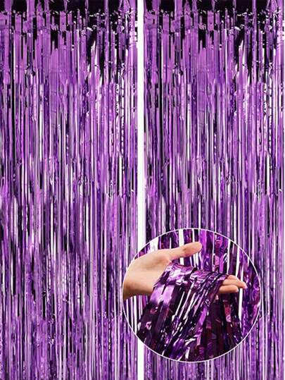 1/2 包 1x2M 金属箔流苏窗帘背景飘带适用于生日派对婚礼新娘送礼会节日装饰门飘带 - 紫色 - 查看 1