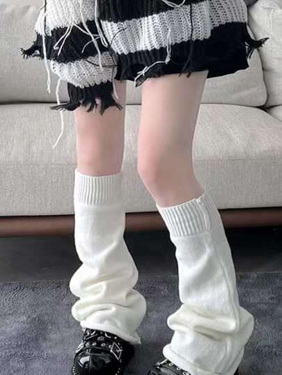 半双 Y2K 纯色踝靴,适合搭配裙子 - 白色 - 查看 10