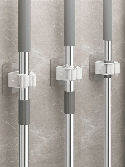 1/3/5 件防水无损免钻强力粘性拖把夹、浴室和厨房拖把/扫帚挂钩、粘性墙钩、扫帚架和拖把夹、清洁工具收纳夹架 - 彩色 - 查看 10