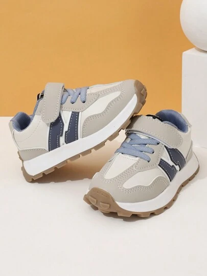 1-3岁时尚儿童运动鞋,婴儿钩环幼儿步行鞋,儿童柔软休闲运动鞋 - 灰色 - 查看 1